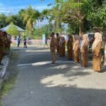 Bone Bolango – Sekretaris Daerah (Sekda) Kabupaten Bone Bolango, Iwan Mustapa, memimpin apel kerja di Kecamatan Tapa, Senin 22/9/2025) Dalam
