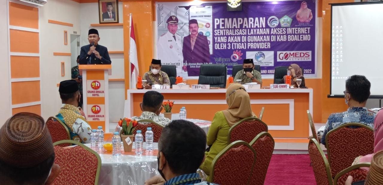 Ajakan tersebut disampaikan Bupati Anas pada saat menghadiri layanan sentralisasi akses internet yang akan digunakan di Kabupaten Boaelmo. Jumat, (7/1/2022).