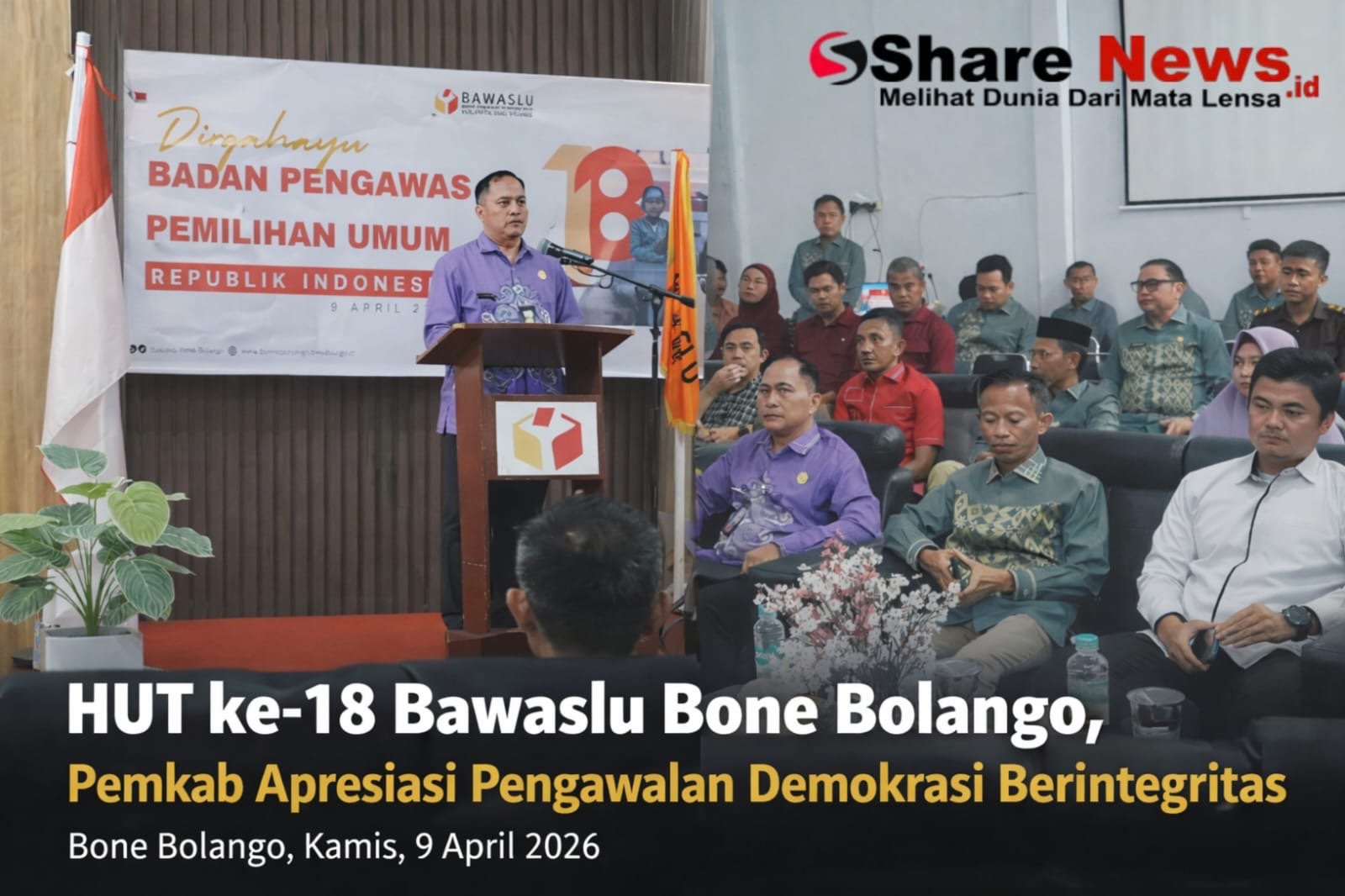 BONE BOLANGO – Peringatan Hari Ulang Tahun (HUT) ke-18 Badan Pengawas Pemilihan Umum (Bawaslu) Kabupaten Bone Bolango menjadi momentum refleksi sekaligus penguatan sinergi antara penyelenggara pemilu dan pemerintah daerah dalam menjaga kualitas demokrasi yang berintegritas.