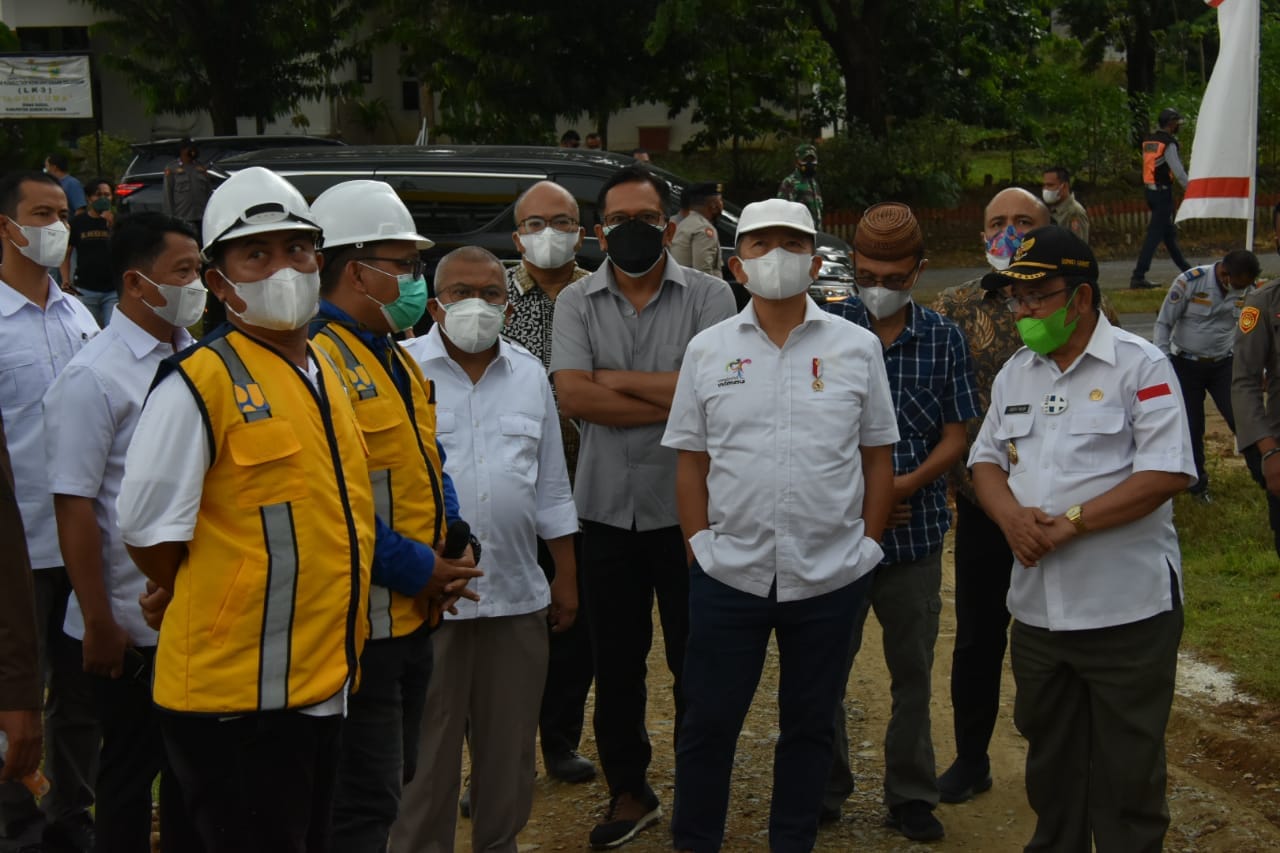 Suharso, ditemani sejumlah pejabat dari kementerian, Bupati Gorontalo Nelson Pomalingo, Bupati Gorut Indra Yasin, wakil Bupati, serta unsur Forkopimda Provinsi dan Kabupaten, serta pimpinan OPD.