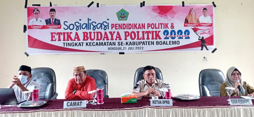 Boalemo – Kesatuan Bangsa dan Politik, Kabupaten Boalemo menggelar sosialisasi pendidikan politik dan etika budaya politik, yang berlangsung di Kecamatan Wonosari. Kamis, (21/7/2022).