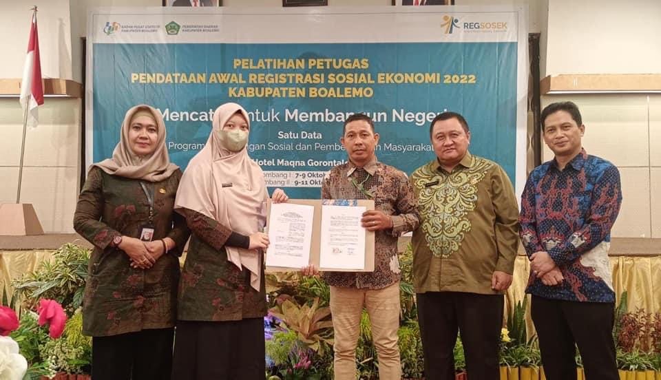 Penjabat Bupati Boalemo Dr. Hendriwan, M.Si menyampaikan apresiasinya kepada Badan Pusat Statistik Kabupaten Boalemo yang telah melaksanakan Pelatihan bagi petugas pendata awal registrasi sosial Ekonomi tahun 2022.