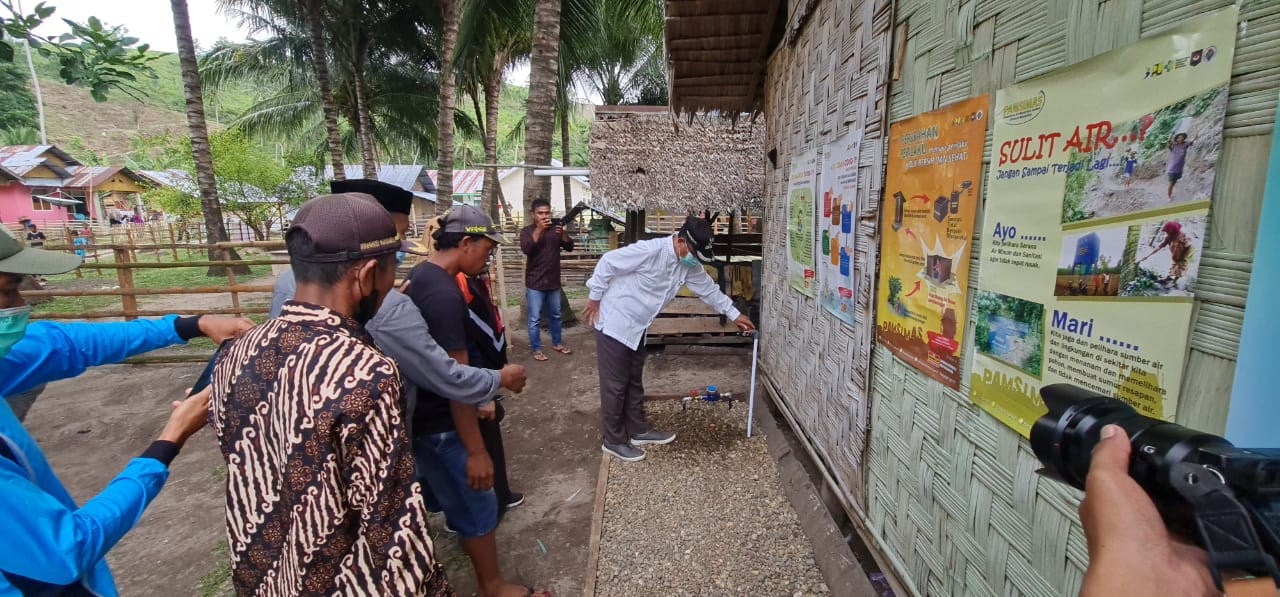 SHARENEWS.ID, Gorut- Wakil Bupati (Wabup), Kabupaten Gorontalo Utara (Gorut), Thariq Modanggu melakukan kegiatan uji fungsi sarana air minum dan sanitasi melalui program Pamsimas, Di Dusun Pasir Putih, Desa Kotajin Utara, Kecamatan Atinggola, Jum’at (1/10/2021).